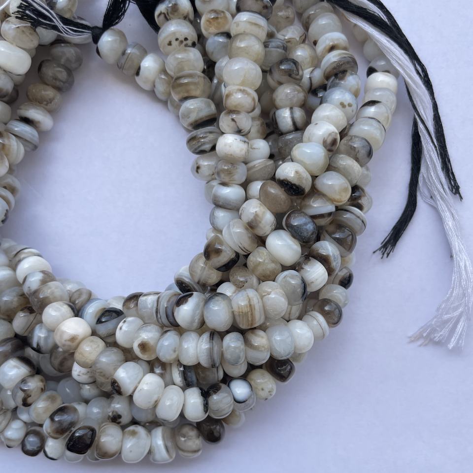 Material:Natural Banded Black White Sard Onyx Smooth Rondelle Beads