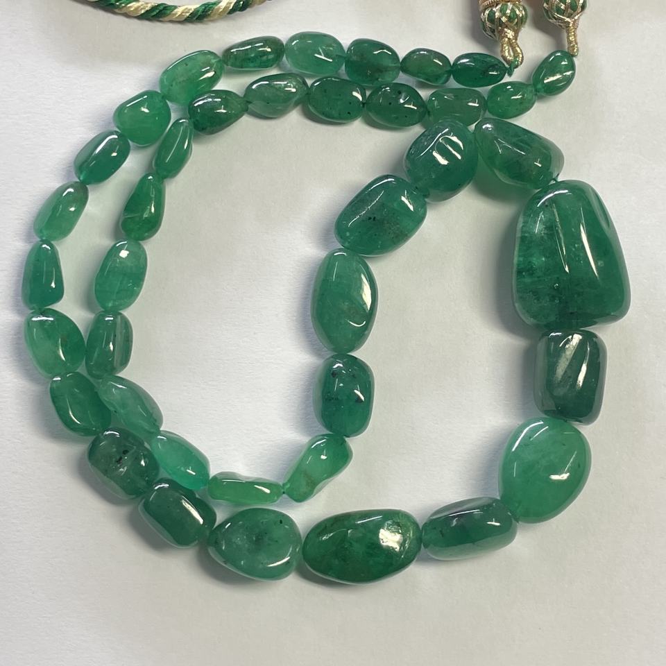 Product Name:Natural Green Zambian Emerald Smooth Tumble Nuggets Stone Beads Strand