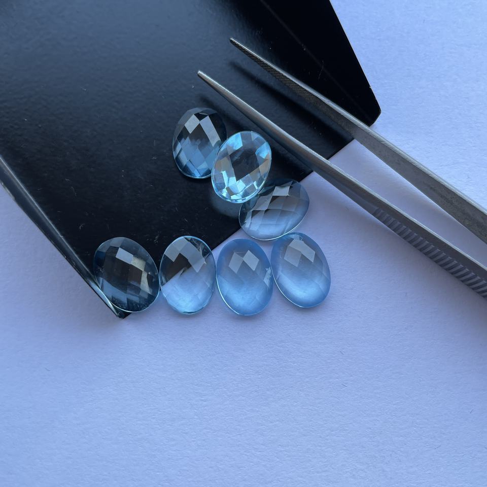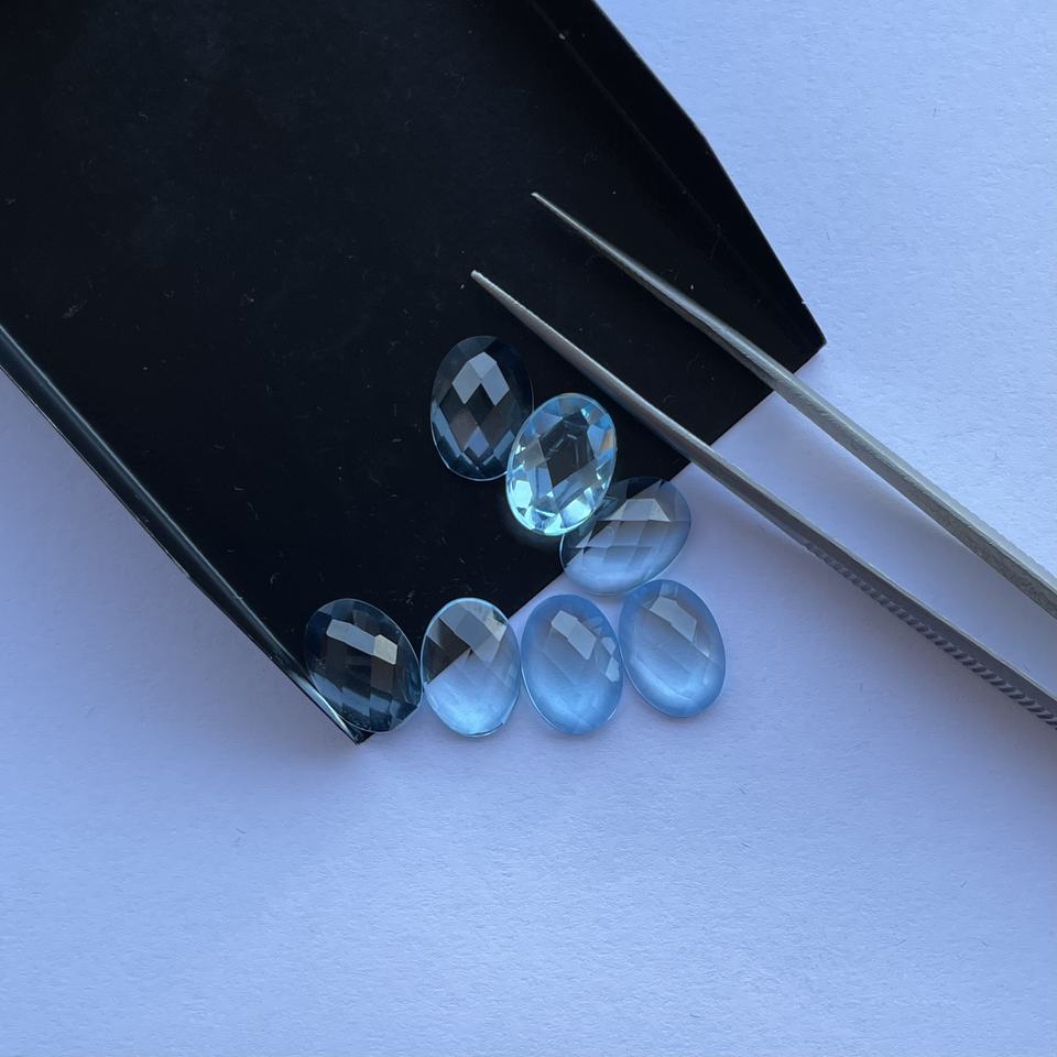 Product Name:Natural Sky Blue Topaz Oval Checker Board Rose Cut Cabochon Gemstone
