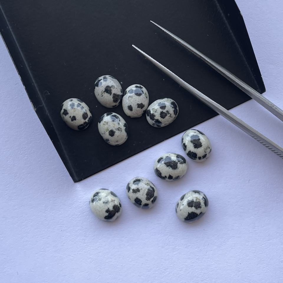 8mm 10mm pierre de jaspe dalmatien naturel lisse ovale semi-précieux calibré cabochons en vrac fournisseur en gros prix d'usine