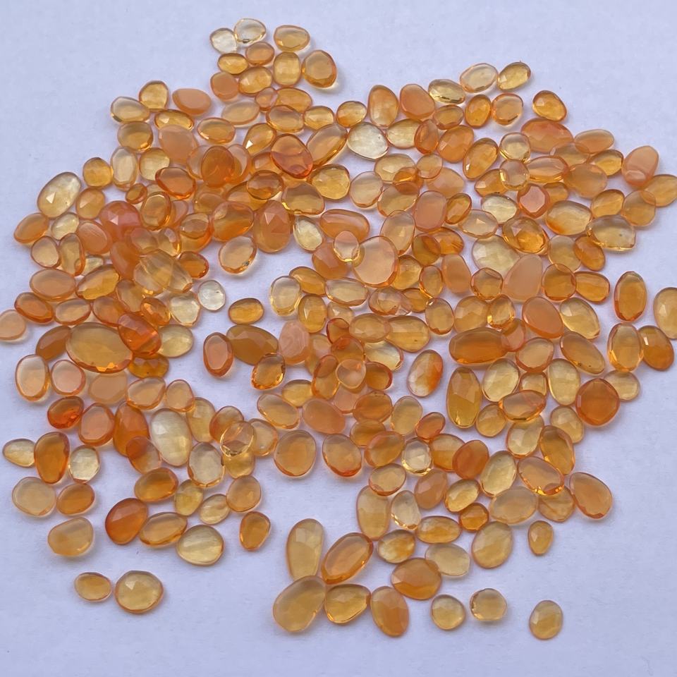 Product Name:Natural Orange Mexican Fire Opal Faceted Polki Slice Loose Gemstone