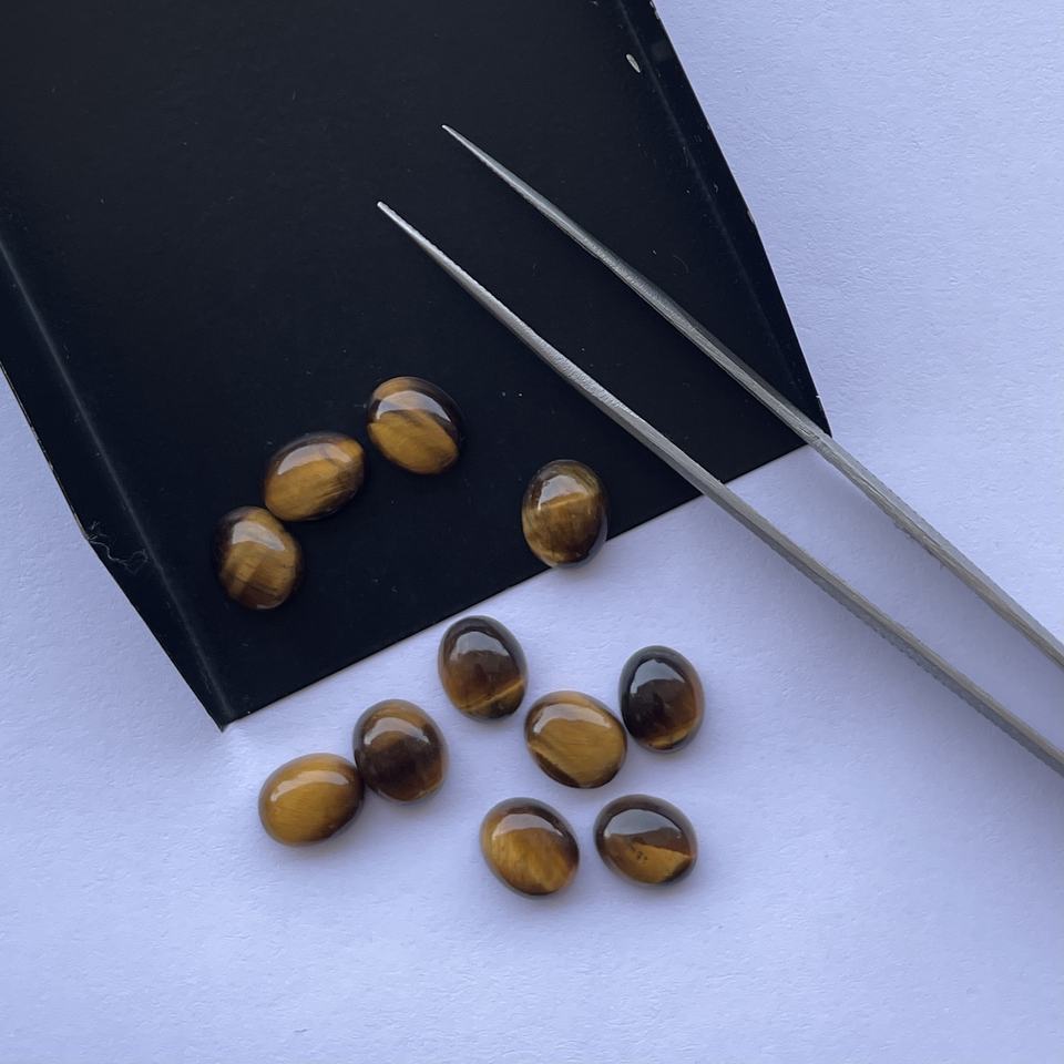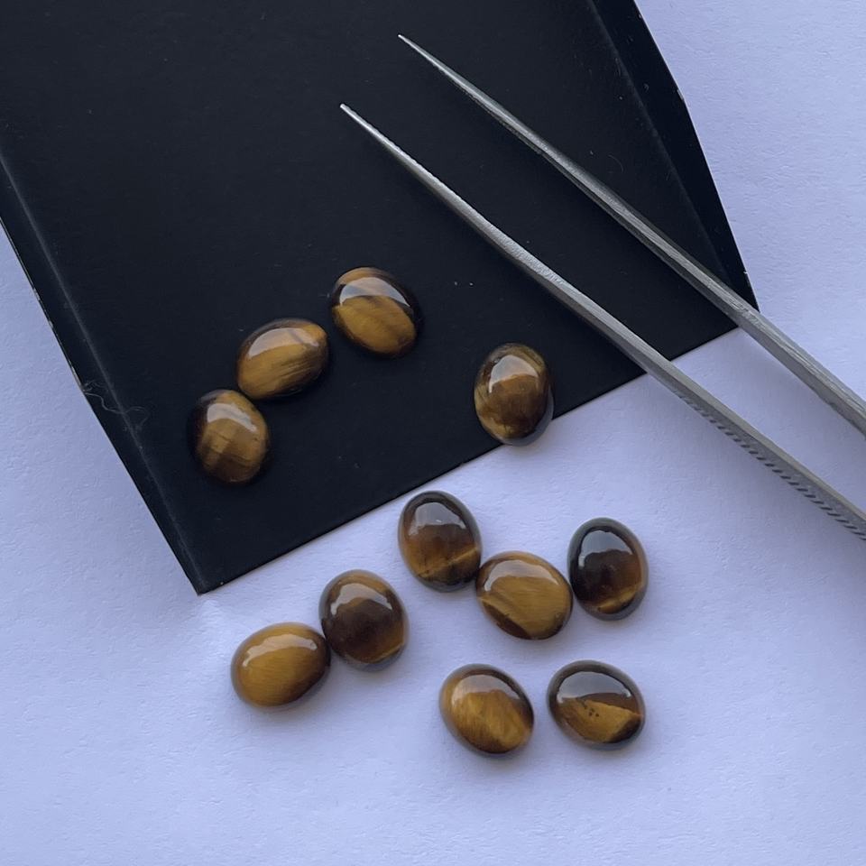 8mm 10mm Natural Tiger Eye Smooth Oval Loose Calibrated Cabochons From Gemstone Supplier Semi Precious for Jewelry Making Real