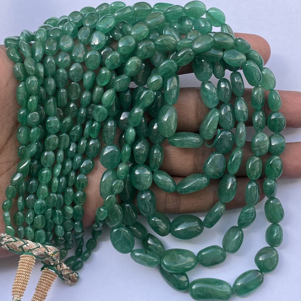 Nom du produit:Fil de perles Maniya lisses en pierre émeraude vert foncé naturel
