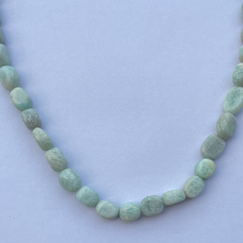 8mm Naturel Vert Bleu Amazonite Lisse Ovale Pierres Précieuses Perles Collier Semi Précieux Bijoux Tendance Cadeau pour Elle Femmes Filles Nouveau