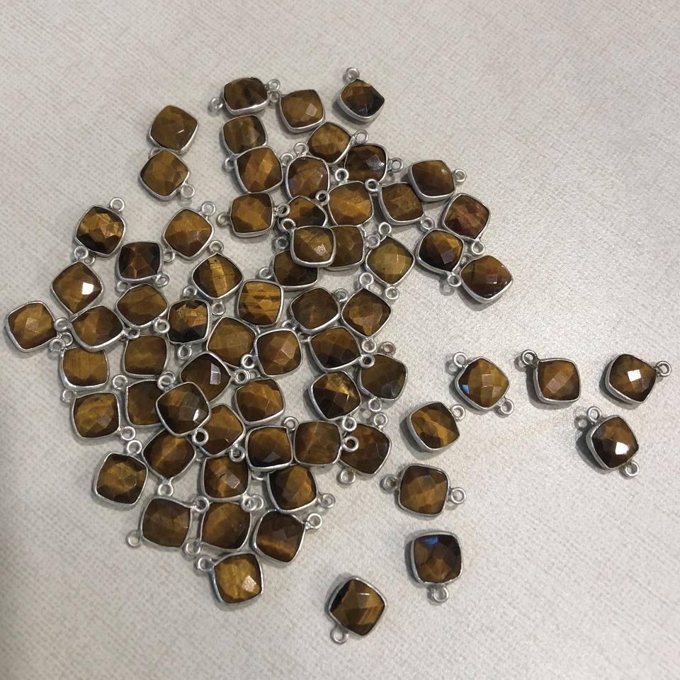 Product Name:Tiger Eye Gemstone Cushion Silver Bezel Connector