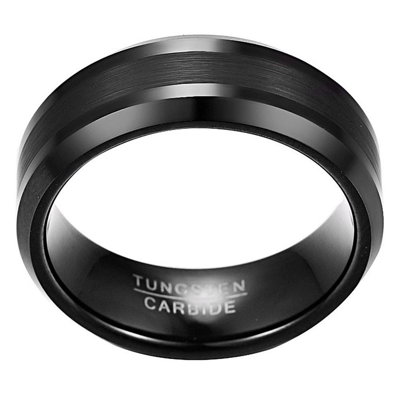Bague en tungstène pour homme, 8 mm, chanfreinée, plaquée noire, Lasha Intergrain Craft