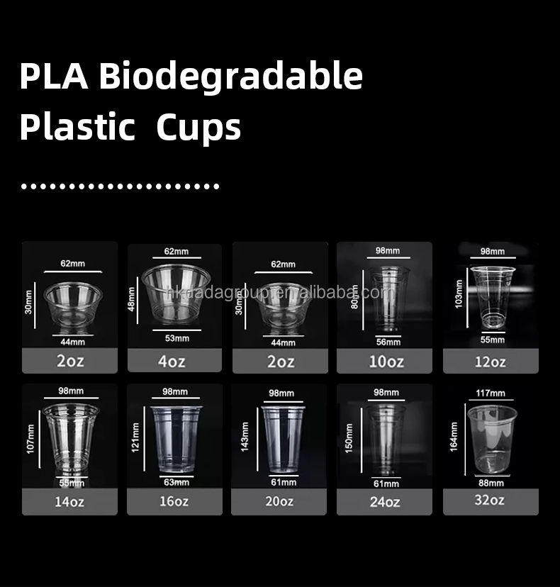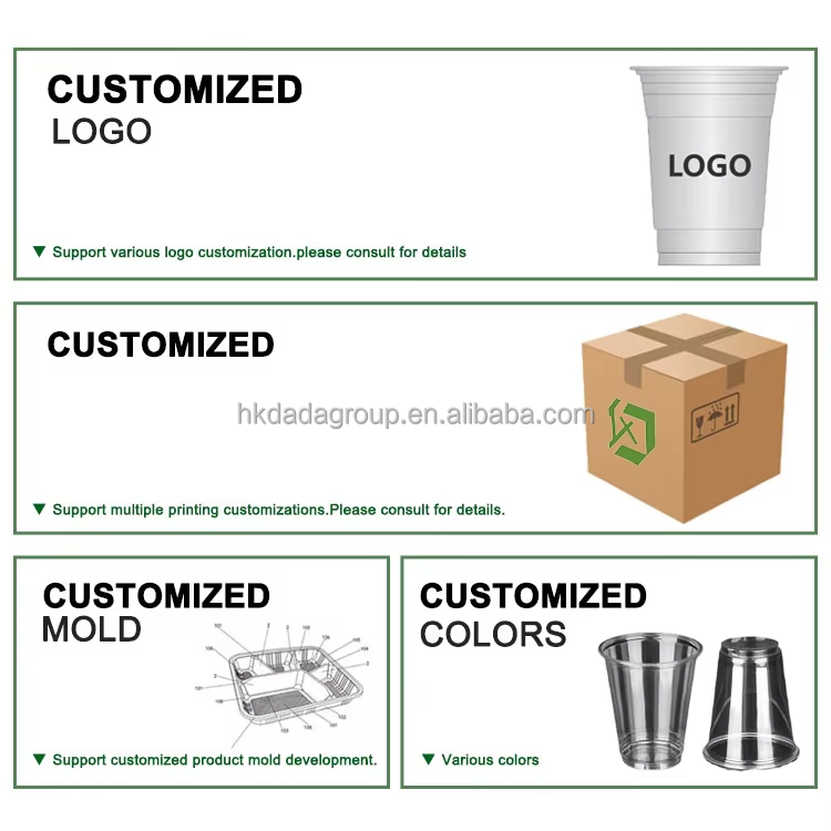 Gobelets en plastique PET à paroi simple avec couvercle, impression personnalisée du logo, 8 oz à 32 oz, diamètre 90 mm, jetables pour desserts et café pour animaux de compagnie