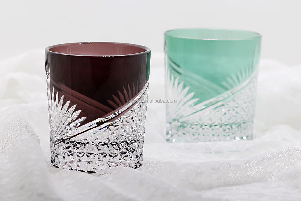 8oz Style japonais Edo Kiriko Design coupe à la main motif grue verte verre cristal whisky gobelet verre vintage pour vin et eau