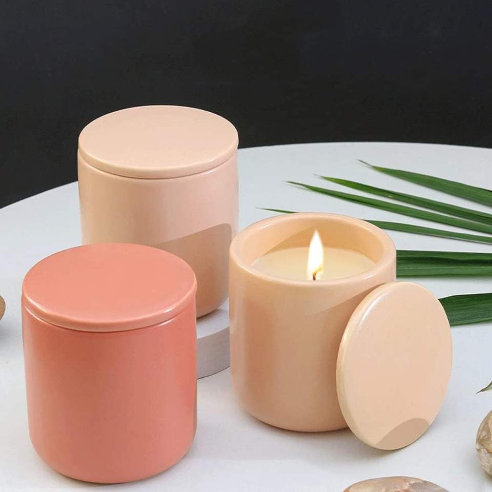 Bocaux à bougies en verre de luxe mat laiteux de 8 oz, forme ronde unique, avec couvercles en liège, vente en gros