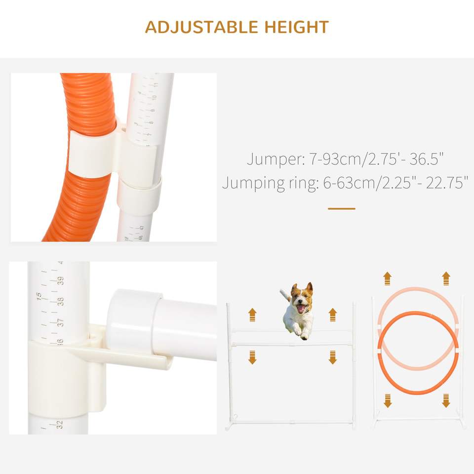 Kit d'entraînement d'agilité pour chien 8 pièces réglable : parcours d'obstacles avec anneaux de saut, poteaux de maniuvres, boîte de pause carrée et sifflet