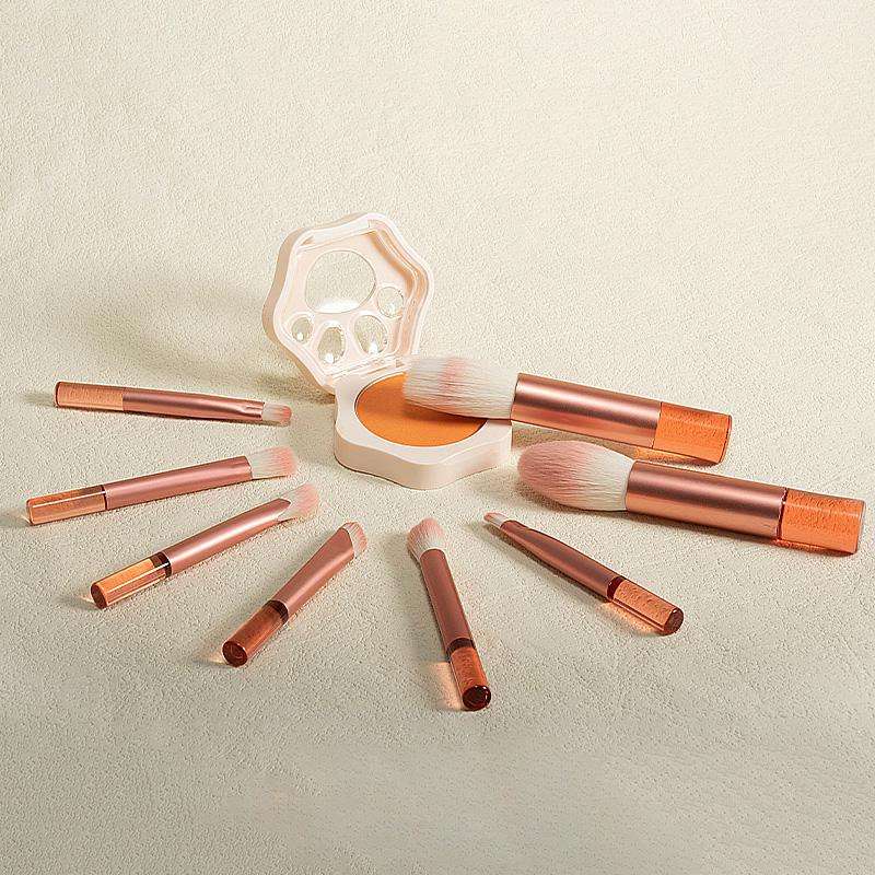 Kit de 8 mini pinceaux de maquillage rose mignon avec manche court et boîtier en or, mini pinceaux de maquillage en vrac, échantillon gratuit