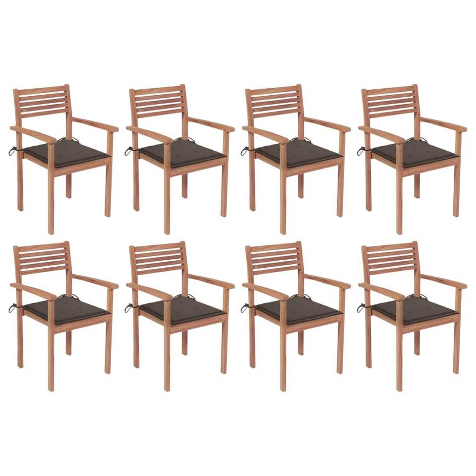 8 chaises de patio empilables en teck massif avec coussins