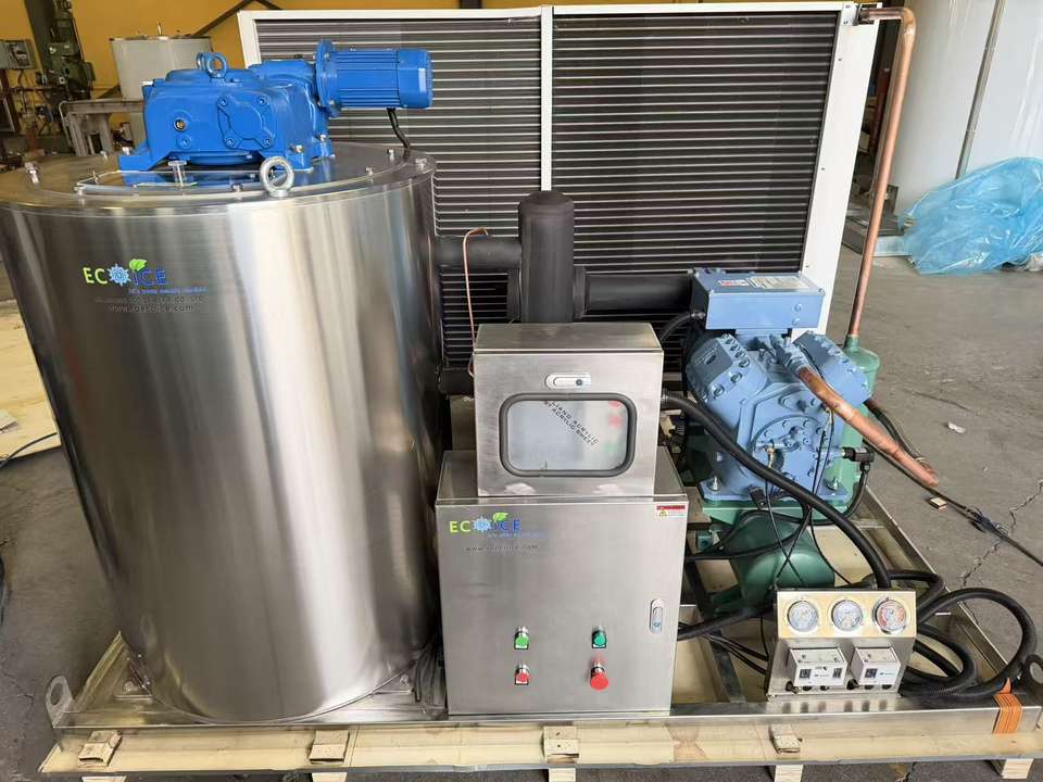 Machine à glace en flocons de 8 tonnes pour abattoir, machine à glace en flocons personnalisée pour la viande de volaille