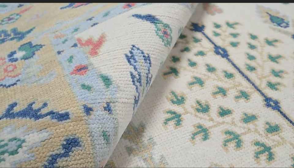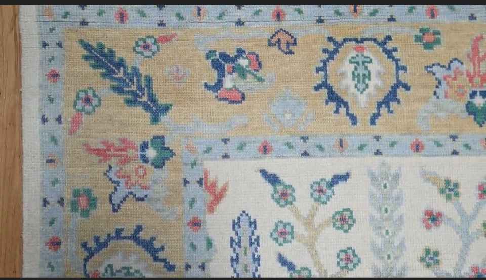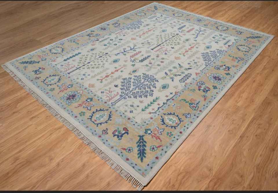Tapis Oushak 8x10 Bisque Ivoire, Tapis en Laine Floral, Tapis Bleu Ciel Vert & Blush Couleur, Grand Tapis Turc, Tapis Moderne: Azalée