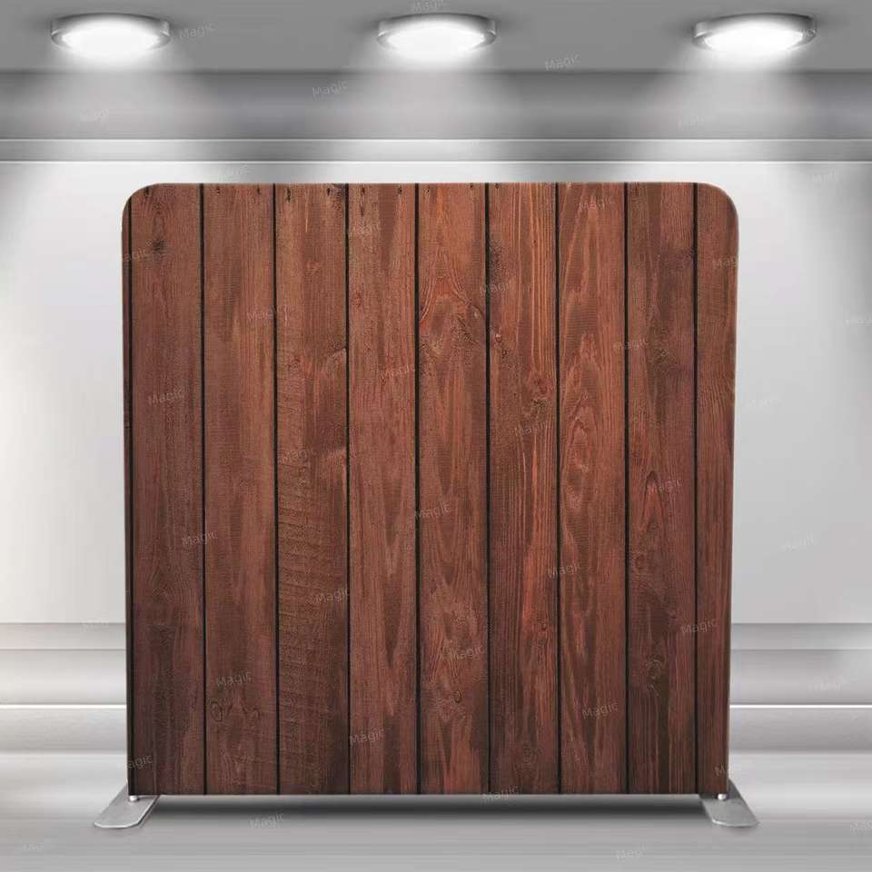 8x8 affichage de toile de fond de mariage en bois foncé avec cadre en aluminium taie d'oreiller en tissu de Tension double face bannière de support de photomaton
