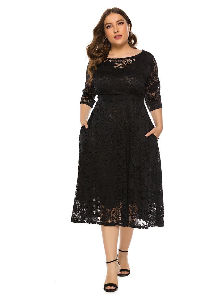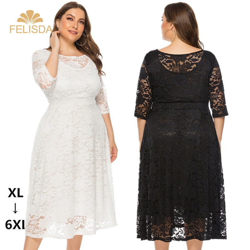 8xl Plus Size Women's Clothing Contrast Lace Half Sleeve Semi Sheer Midi Prom Party Wedding Evening Casual Dress for Women 2025
