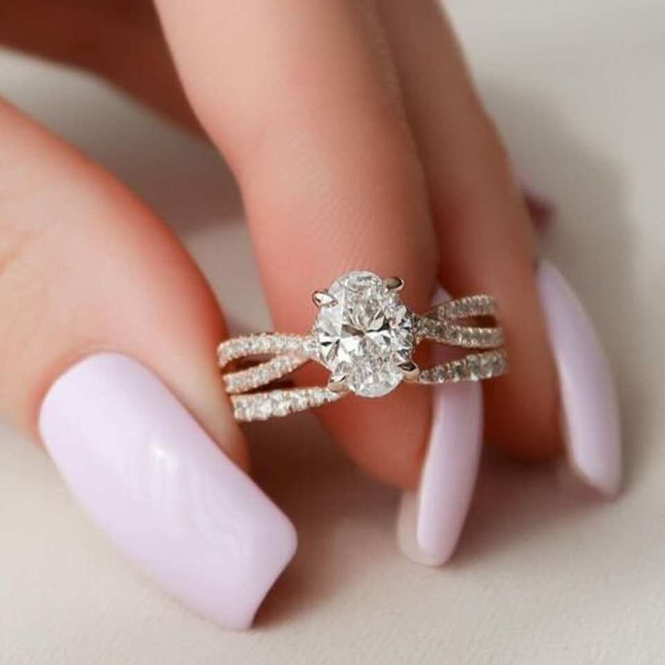 9.00X7.00 ensemble de bagues de mariée en Moissanite à coupe ovale incolore
