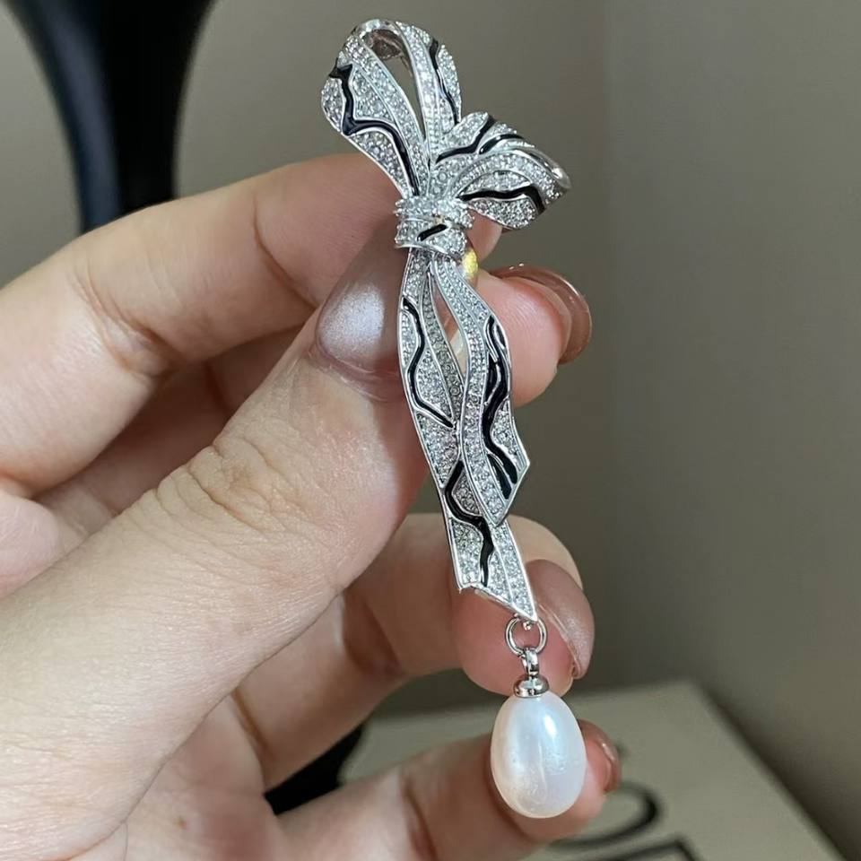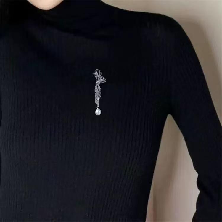 Broche en perles d'eau douce naturelles de forme riz de 9-10 mm, nœud serpent, fleur de poitrine, épingle à collier à forte luminosité, micro défaut, aiguille