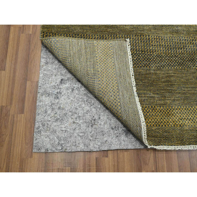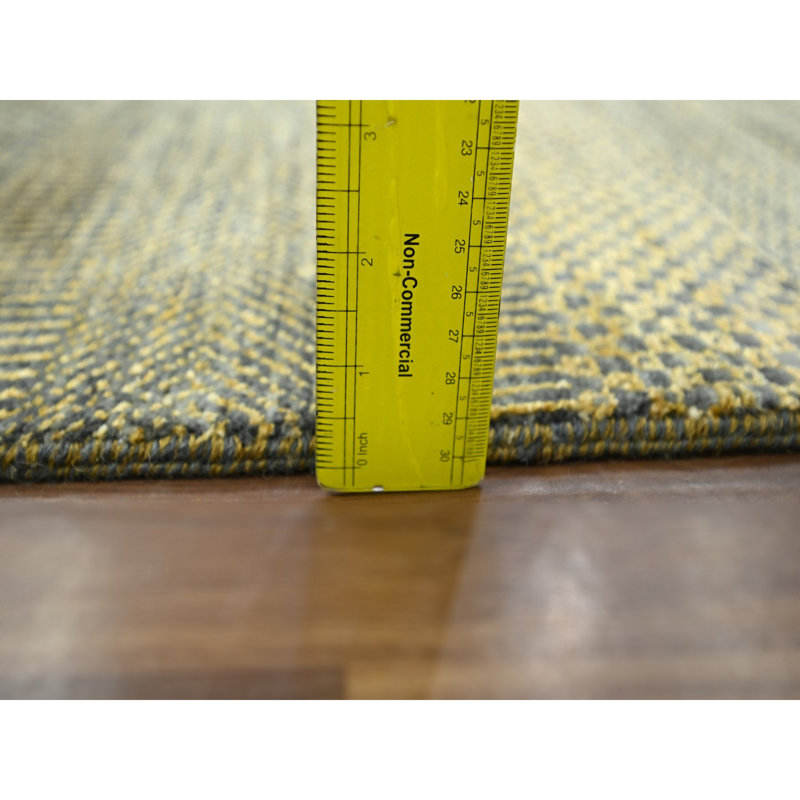 9'2\"x12'6\" Bone Brown Modern Grass Design Hand Knotted Borderless Denser Weave Tone on Tone Wool Silk Lush Plush Home Decor