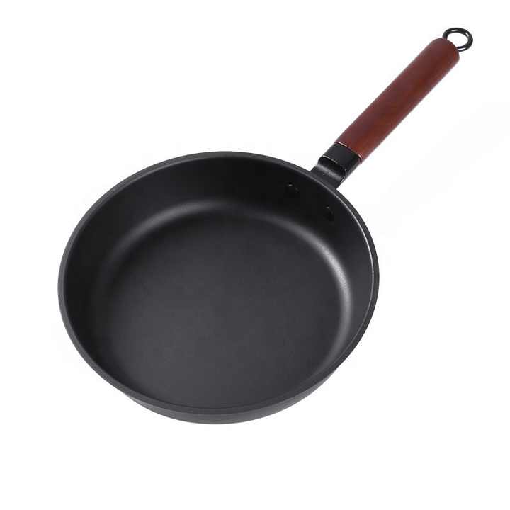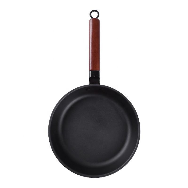 Poêle à frire antiadhésive en fer fin de 9,45 pouces avec manche en bois détachable, compatible tous types de plaques de cuisson, légère, écologique, durable, style Zen asiatique