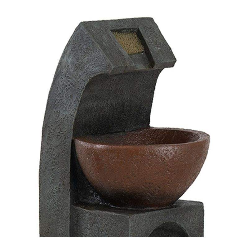 Fontaine à eau intérieure/extérieure sculpturale noire et marron de 9,4x9,1x23,8 pouces avec bassin à pompe lumineuse