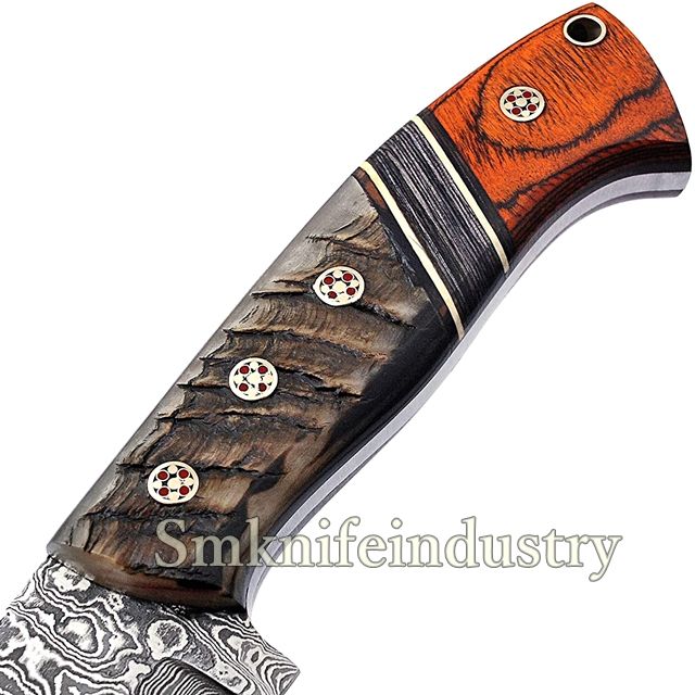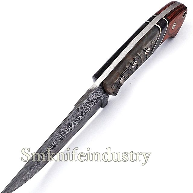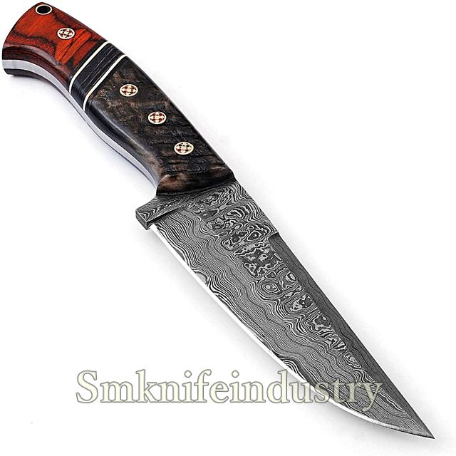 Couteau de chasse et à dépecer en acier Damas fait main sur mesure de 9,5 pouces, lame fixe, manche en bois, OEM par Sm Knives (smk1995)
