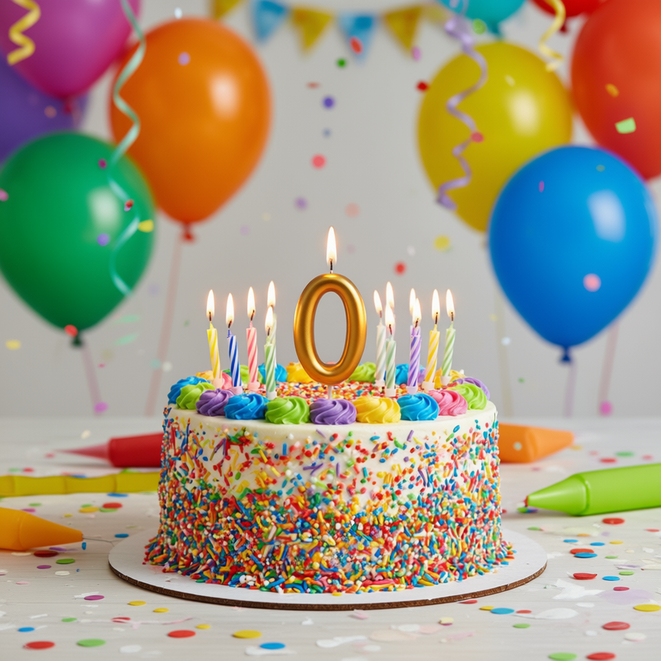 PARTY GO Bougie d'anniversaire dégradée 9,5 cm Chiffre 0 en métal Décorations de gâteau Fournitures pour fête d'anniversaire