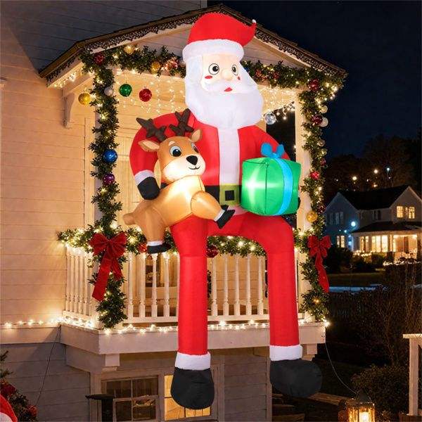 Décoration de Noël gonflable extérieure de 9,5 pieds, Père Noël assis, 4 lumières LED intégrées, polyester 210T, gonflage rapide, décoration de jardin