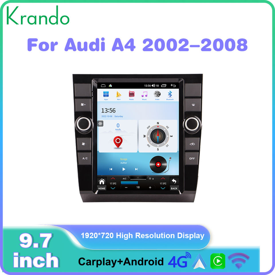Unité de tête Android Style Tesla de 9.7 pouces pour Audi A4 2002-2008 Autoradio Navigation Auto Stéréo Multimédia Sans Fil CarPlay 4G GPS