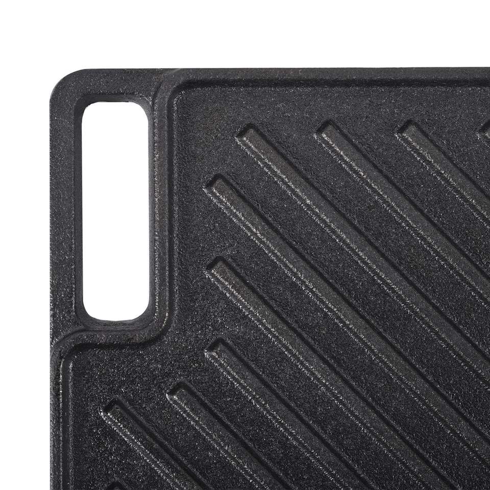 Plaque de cuisson rectangulaire réversible en fonte pré-culottée 9,7''x16,7'' à double brûleur, antiadhésive, idéale pour la famille