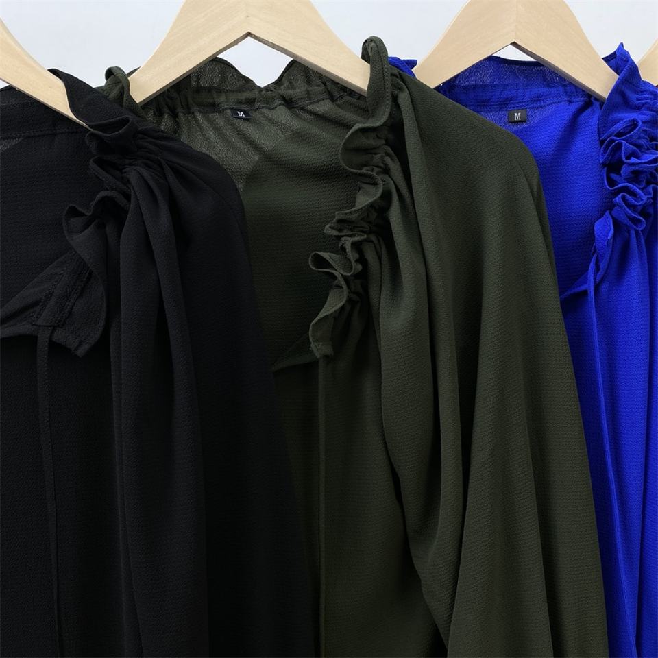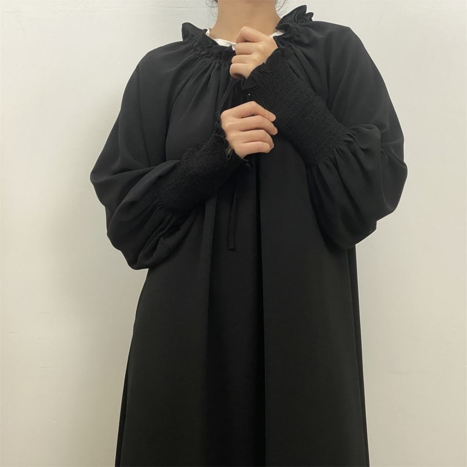 Nouvelle Robe Chic 9.9 à Col Cordon Plissé, Dentelle, Manches Longues Élastiques, Mousseline Bulle Unie, Élégante et Populaire pour Femme 6764 #