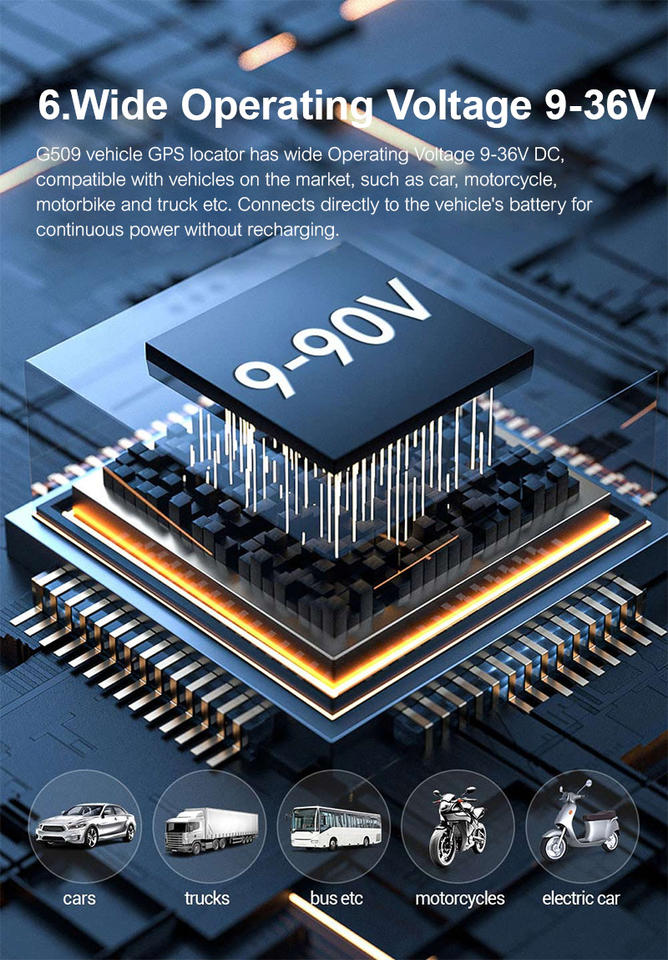 Traceur GPS 4G 9-90V avec coupure moteur à distance, suivi en temps réel, alarme de mouvement/vibration, géolocalisation et historique d'itinéraire pour véhicules