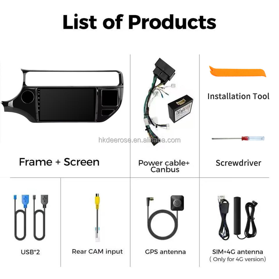Autoradio 9 pouces 1280*720 IPS Car-play 8 cœurs 1,6 GHz Android 13 4G LTE avec WIFI Navigateur pour KIA RIO 2015-2017