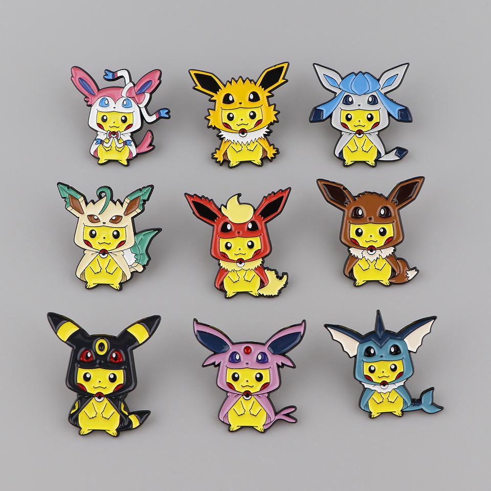 9 couleurs mignon Pikacu dans le Style Cosplay peint émail métal Badge broches pour sac à dos tissu décoration