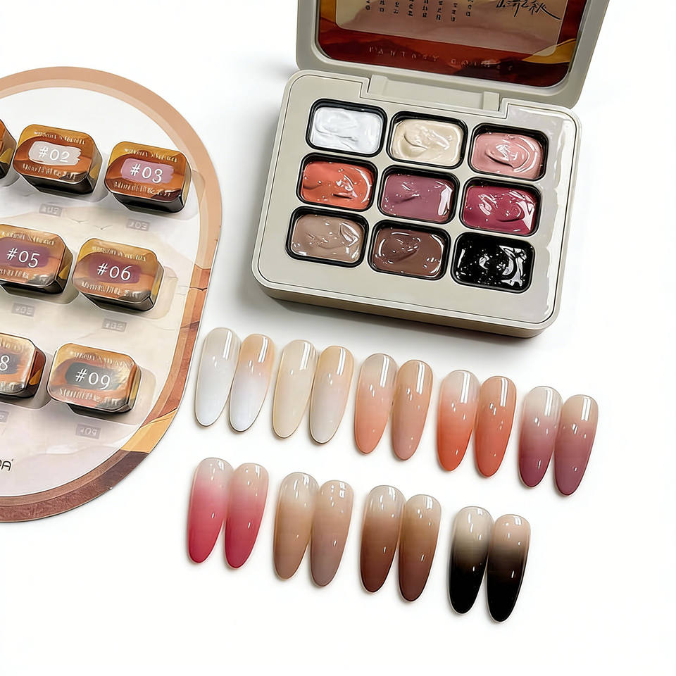 Ensemble de vernis gel en 9 couleurs, gel UV LED translucide nude brun pour manucure française et nail art
