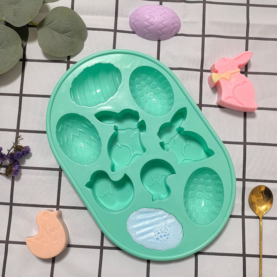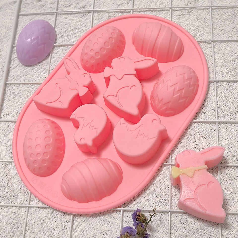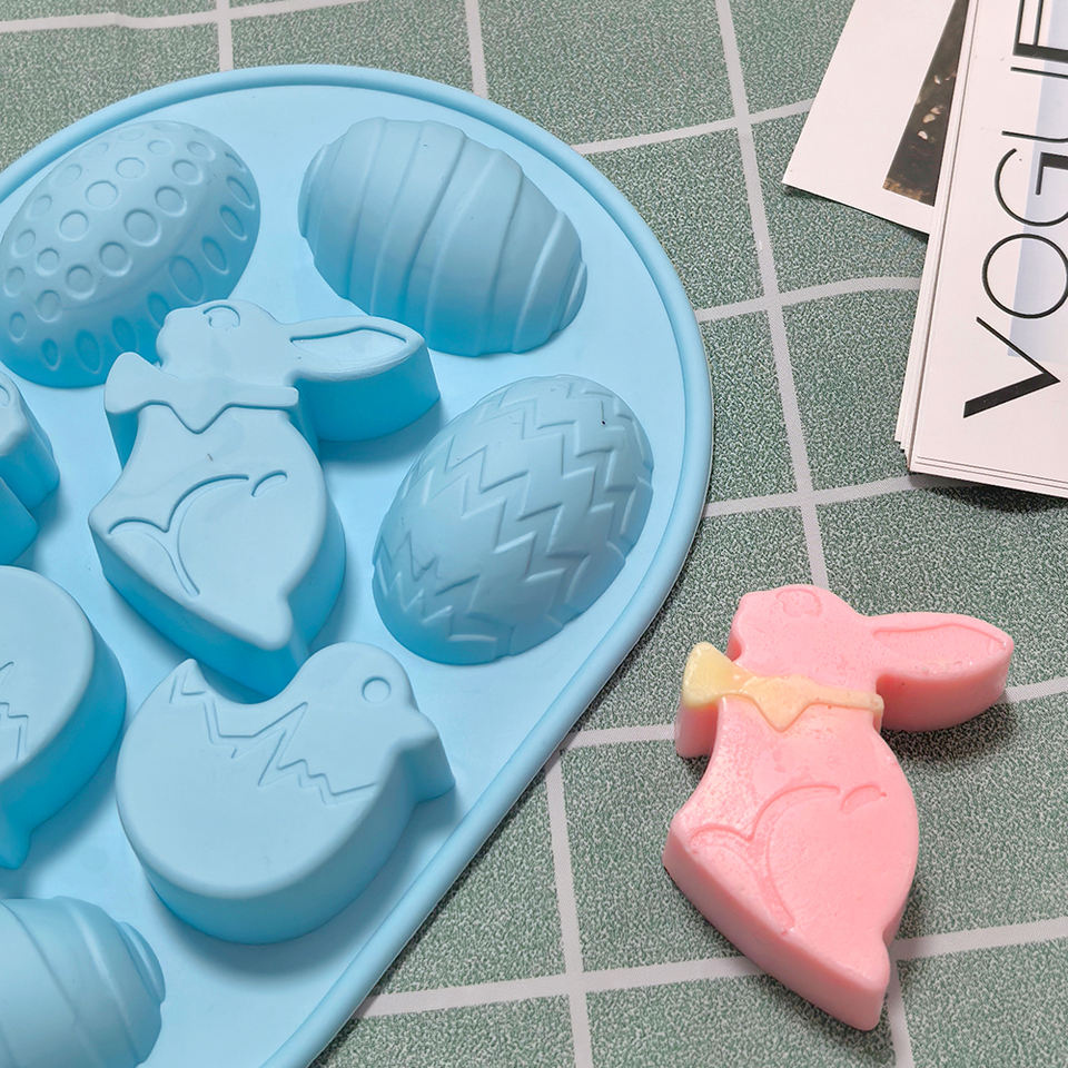 Moule en silicone 9 cavités pour Pâques, en forme de lapin et d'œuf, pour chocolat, gâteau, bonbons, bougies, savons, décoration de fêtes, outils de pâtisserie faits maison