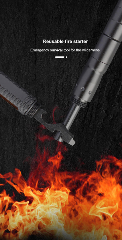 Outil multifonction 9 en 1 EDC à action par glissière, sifflet, allume-feu, lumière, brise-vitre, outil d'autodéfense, stylo tactique avec boîte