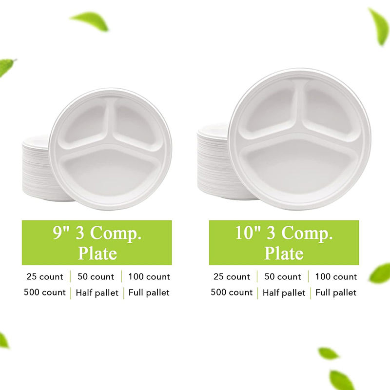 Assiettes jetables biodégradables de 9 pouces 10 pouces Assiettes à dîner jetables Assiettes de bagasse de canne à sucre non blanchies naturelles écologiques
