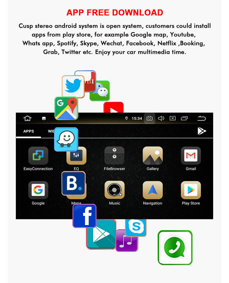 CarPlay, Lien de miroir, Android auto, Bluetooth-activé, Intégré DSP, MP3/MP4, Écran tactile, Visionneuse photo, Radio Tuner, 3D CARTE, Guidage vocal, Commande au Volant, Écran partagé, Multimédia Soutenu, Double Mode système de Navigation, Microphone Intégré, L'interaction vocaleFonction