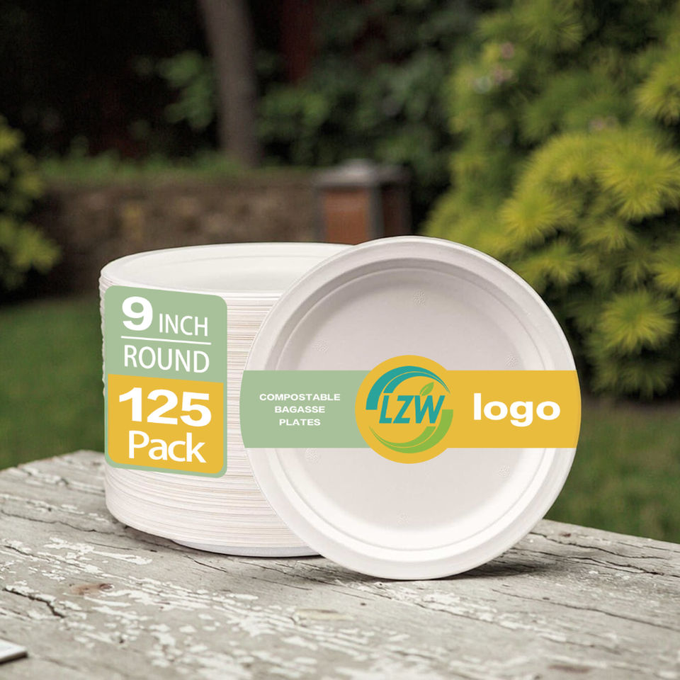 Assiettes de bagasse de 9 pouces jetables de haute qualité compostables assiettes en papier de bagasse de canne à sucre biodégradables blanches de 6 pouces