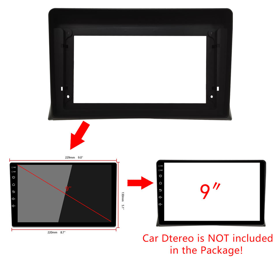 9 pouces Double Din voiture DVD lecteur multimédia ABS plastique Fascia panneaux Volkswagen Multivan T5 2003-2015 accessoires d'intérieur de voiture