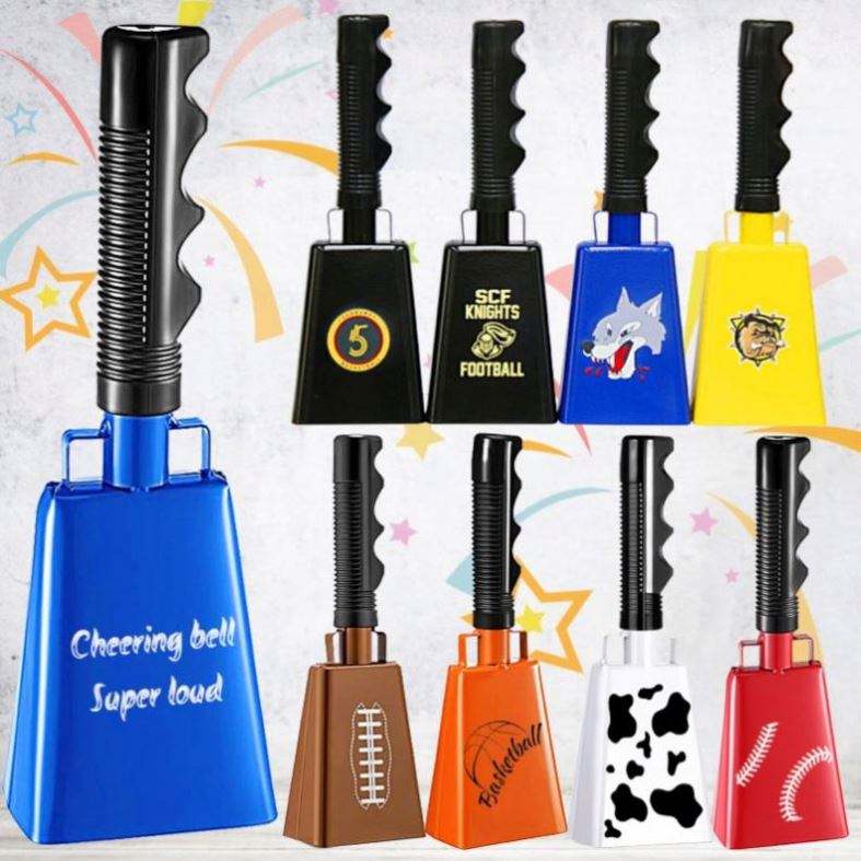 Cloche carrée portative de 9 pouces avec poignée - Cloche de cheering puissante pour événements sportifs, courses et cadeaux promotionnels