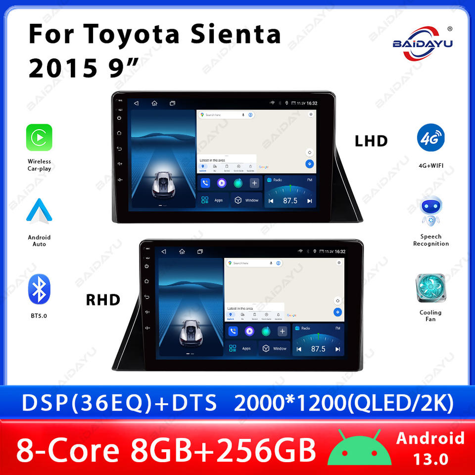 9 pouces IPS Android 13 autoradio GPS stéréo tableau de bord Wifi/BT USB pour Toyota Sienta 2015 écran tactile amplificateur DSP 1 an