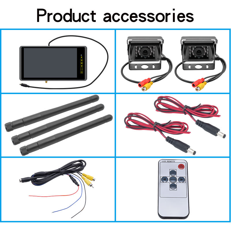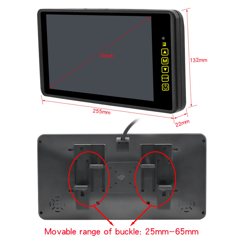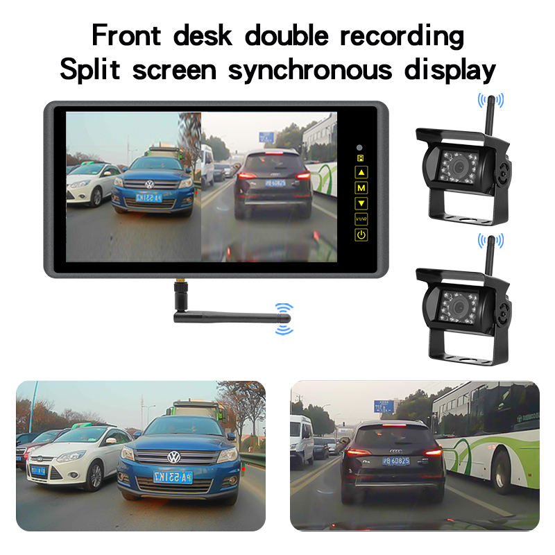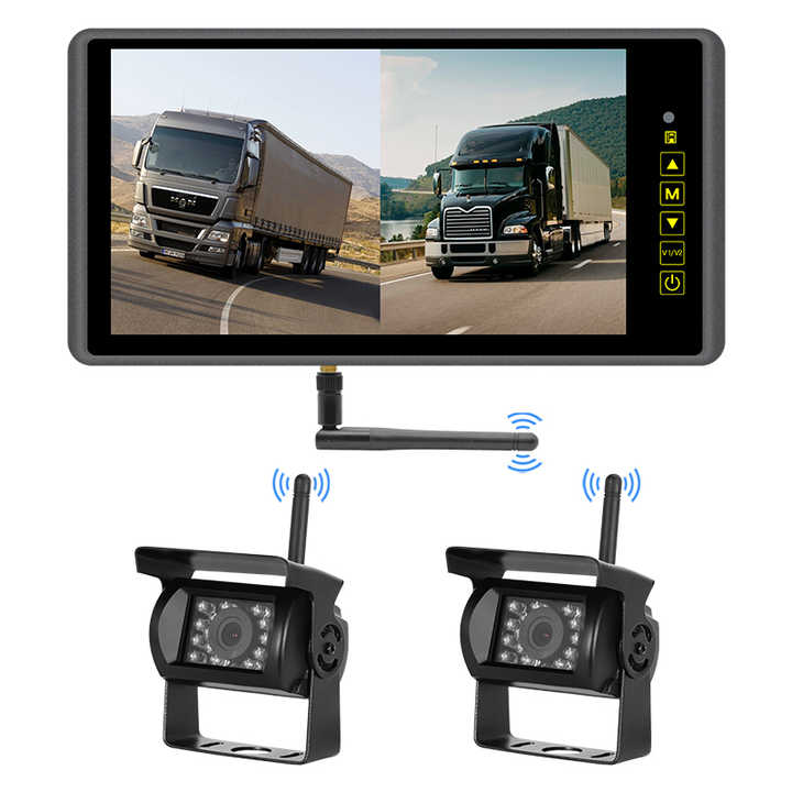 Moniteur de recul sans fil 9 pouces 1080P AHD pour caméra de recul de voiture, camion, bus, fourgonnette, remorque, camping-car 12-36V