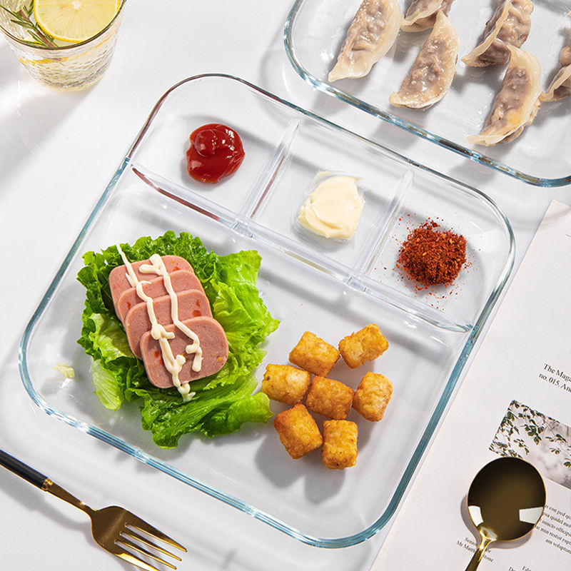 Assiettes en verre trempé de 9 pouces avec diviseurs pour adultes au bureau, en classe