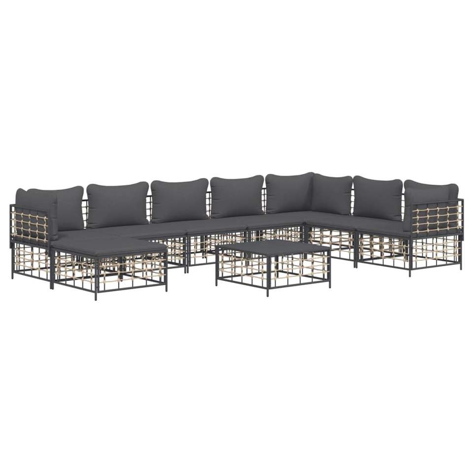 Ensemble de salon de patio en poly rotin anthracite de 9 pièces avec coussins pour le jardin