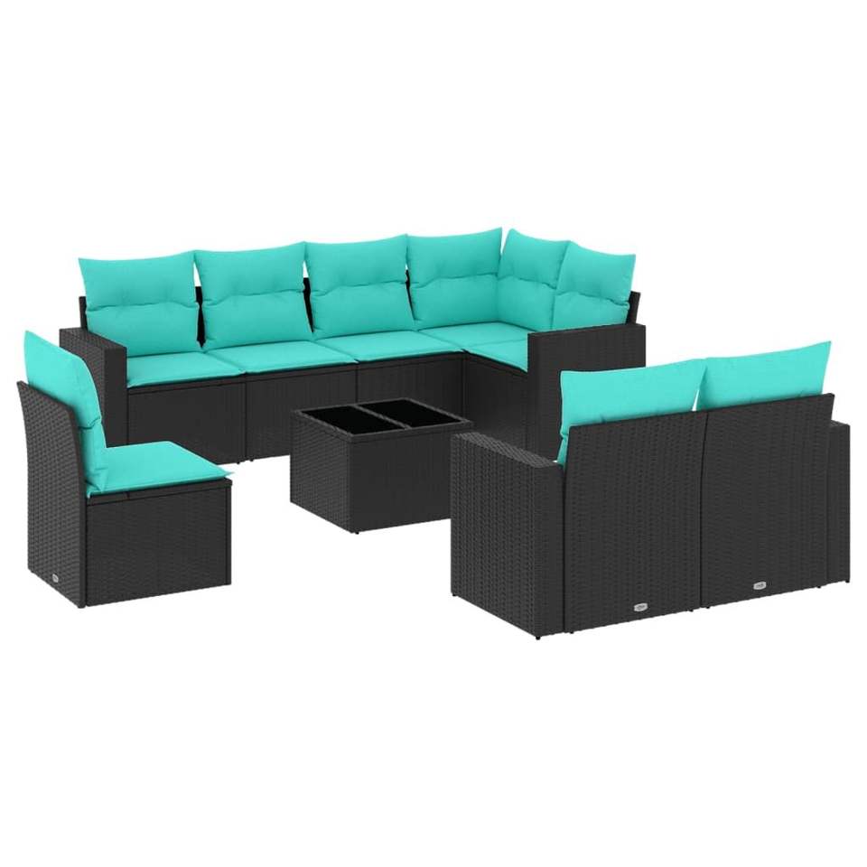 Ensemble de canapés de patio en polyrotin noir, 9 pièces, avec coussins, canapés de jardin