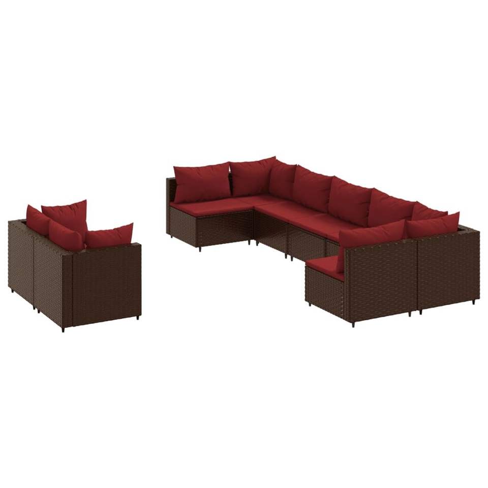 Ensemble de canapés de patio modulaires rectangulaires en rotin PE brun, 9 pièces, canapés de jardin