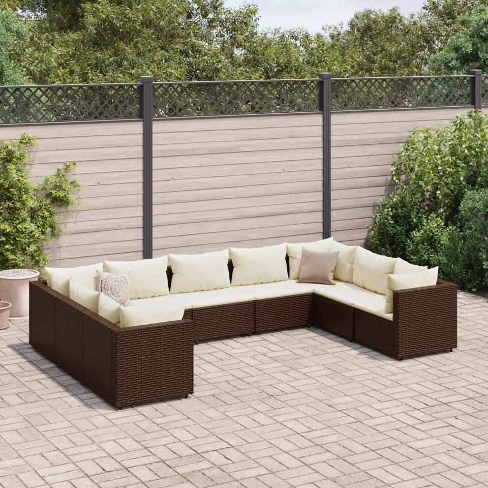 Ensemble de salon de jardin en rotin PE brun 9 pièces