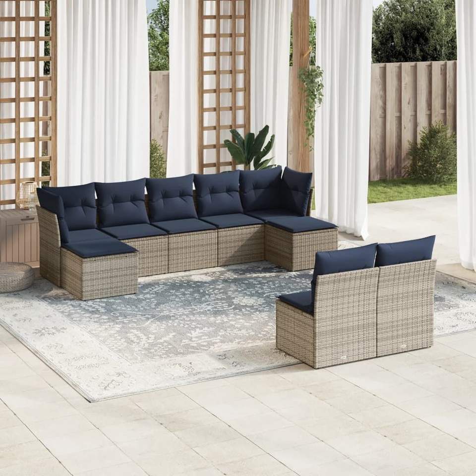 Ensemble de canapés de patio en polyrotin gris, 9 pièces, avec coussins, meubles d'extérieur durables